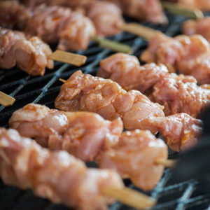 Vlees | Hamburger van rundvlees | Biefstuk met marinade van het seizoen | Kippendij spies gemarineerd | Varkenshaas saté met piri piri marinade